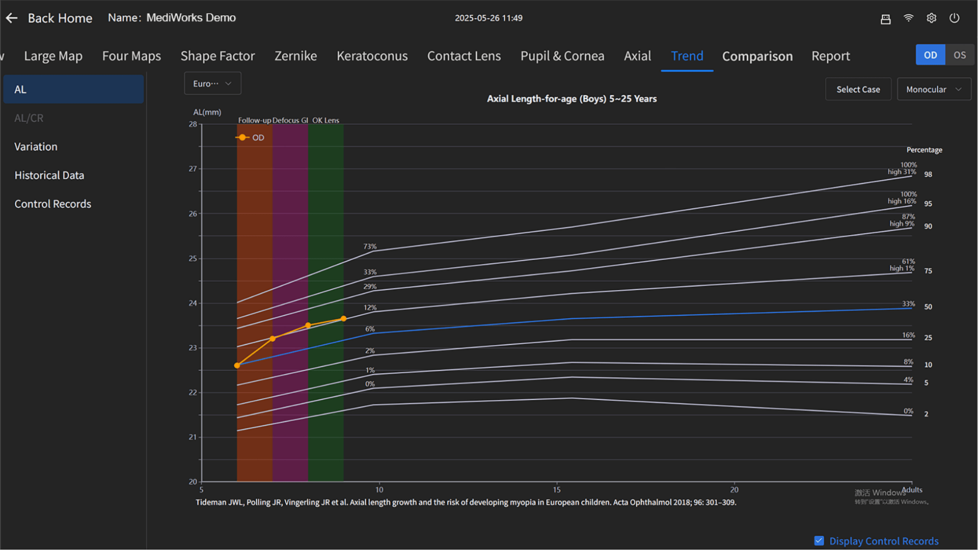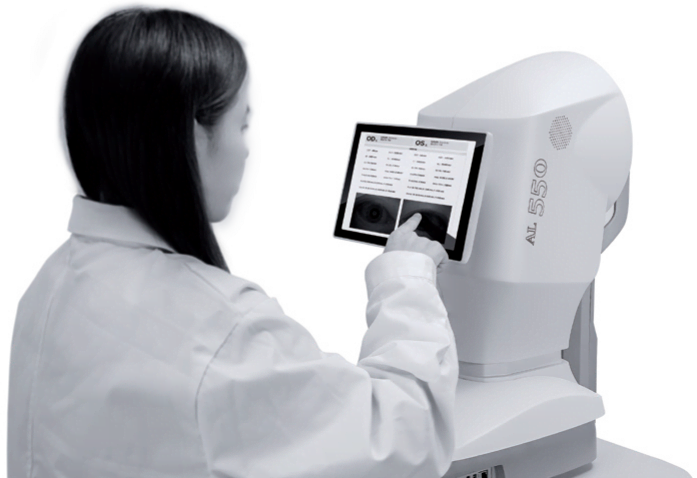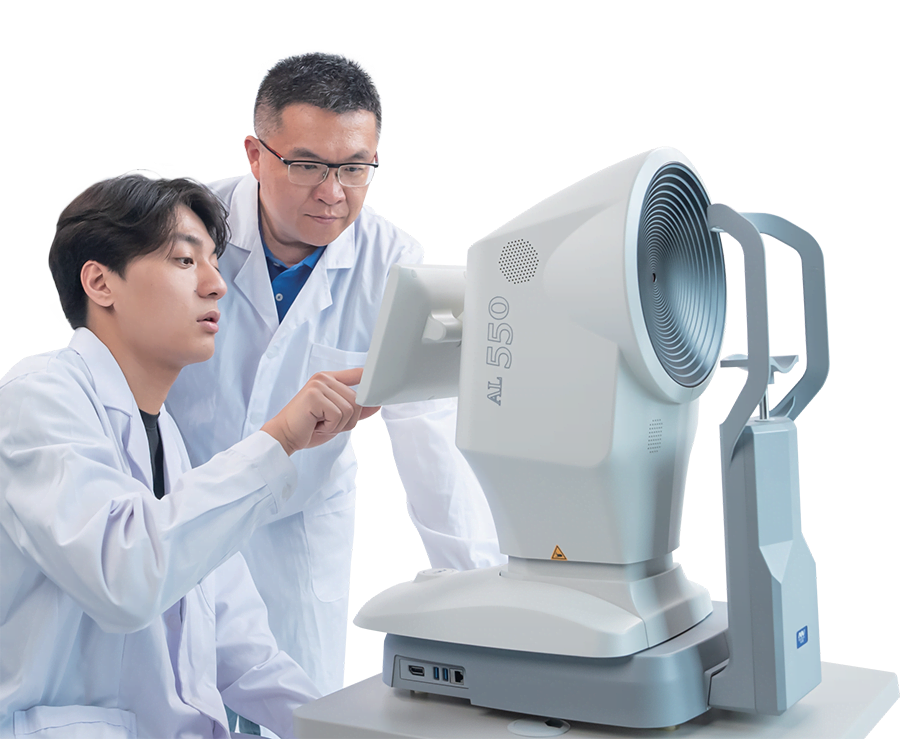 AL550 забезпечує точні вимірювання, такі як осьова довжина (AL) та співвідношення довжини осі до радіуса рогівки (AL/CR), що полегшує офтальмологам оцінку поточного стану прогресування міопії у дітей та підлітків, щоб вжити відповідних заходів щодо їх лікування.