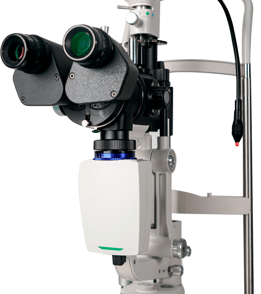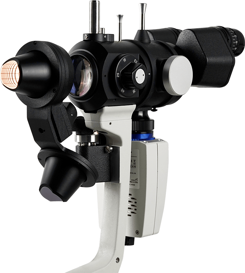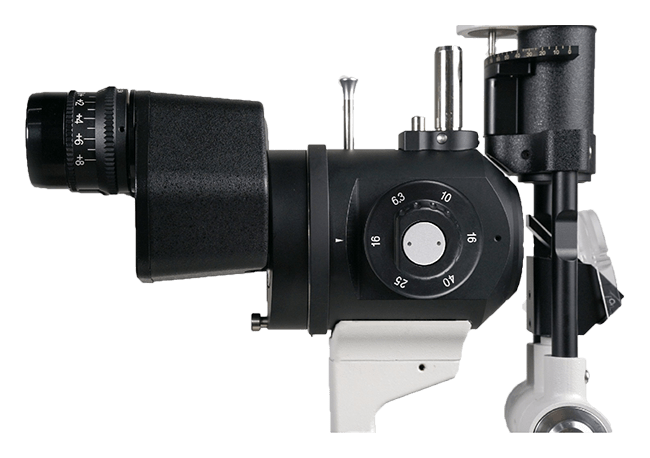 В щілинній лампі S390L використовується обертовий барабан на 5 збільшень (6,3X, 10X, 16X, 25X, 40X). Вбудований жовтий