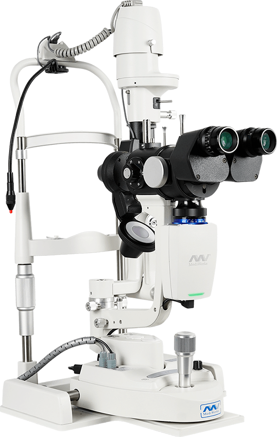 Цифрова щілинна лампа MediWorks S390L — мікроскоп з верхнім освітлювачем, для проведення біомікроскопії очей, з модулем відео та фото фіксацією, оснащена програмним забезпеченям "Mediview" для обробки фотографій і ведення бази пацієнтів.