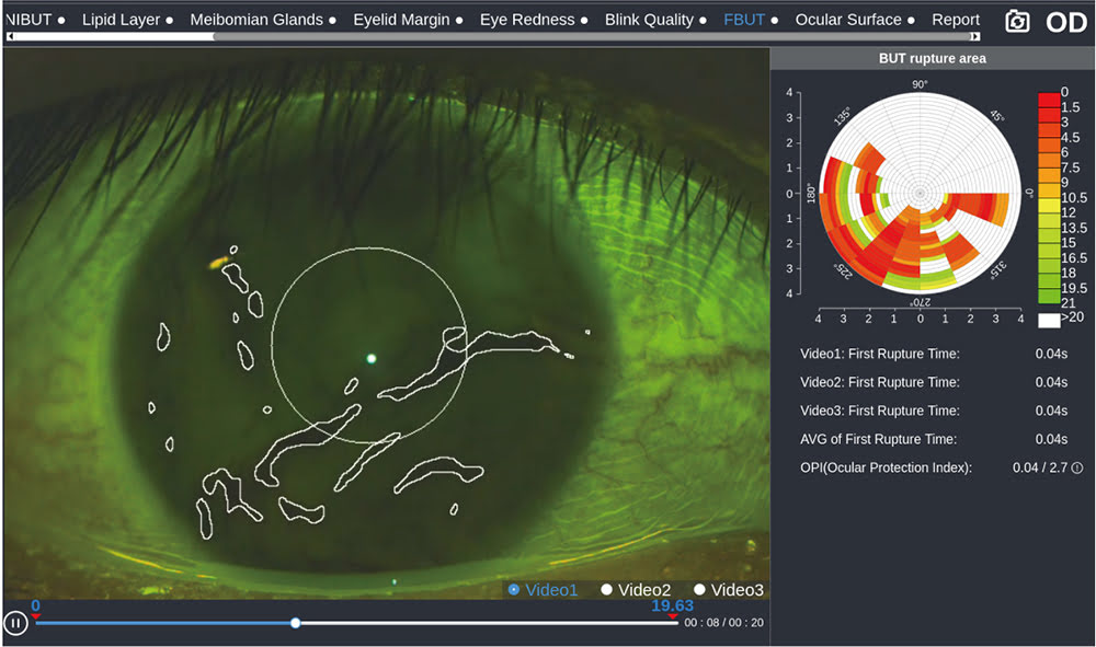 Штучний інтелект автоматично визначає зміни в морфології слізної плівки і розраховує час розриву слізної плівки, щоб оцінити стабільність слізної плівки.