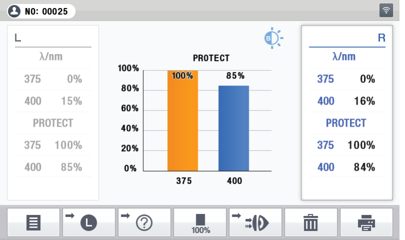 PLM-8000 може виміряти коефіцієнт пропускання через лінзу синього світла та ультрафіолета і відобразити на дисплеї їх показники