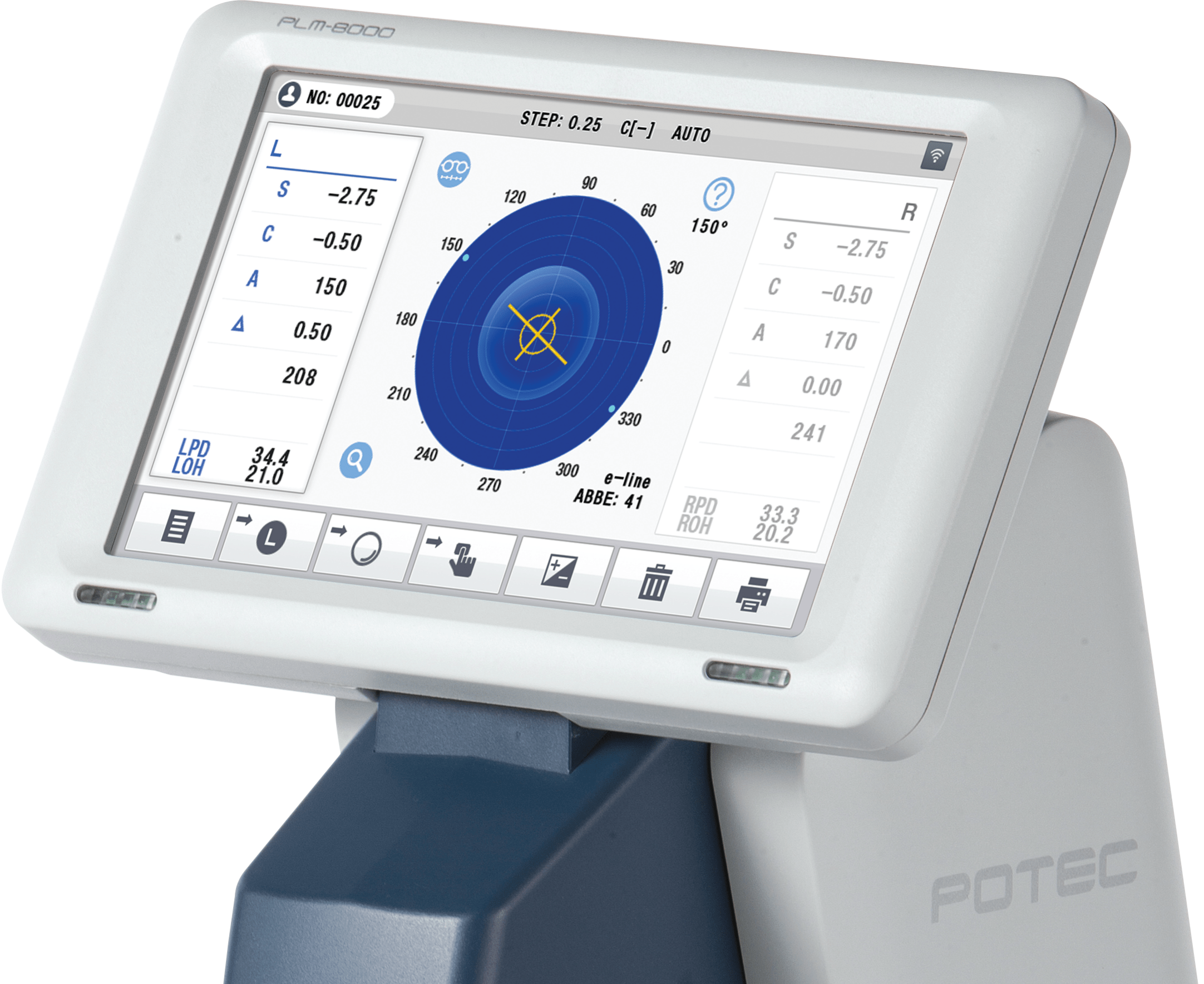 - Автоматичний лінзметр POTEC PLM-8000 розпізнає мультифокальні, прогресивні, біфокальні, трифокальні, призматичні контактні лінзи