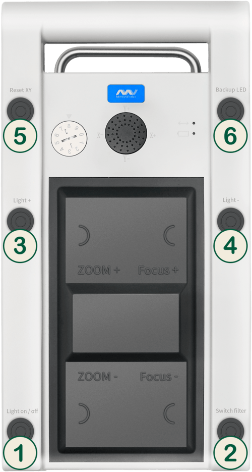 Вбудований резервний блок живлення, проста заміна лампочки та захисний замок на другому кронштейні забезпечують безпеку під час операції.