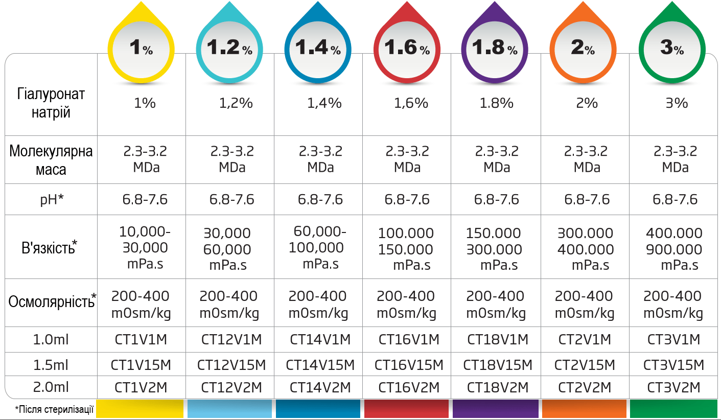- Високоочищений, стерильний, прозорий, в'язкоупругий матеріал з низьким поверхневим натягом без латексу